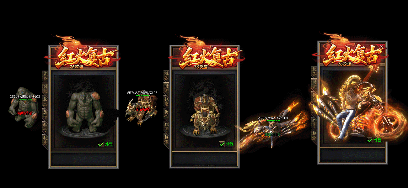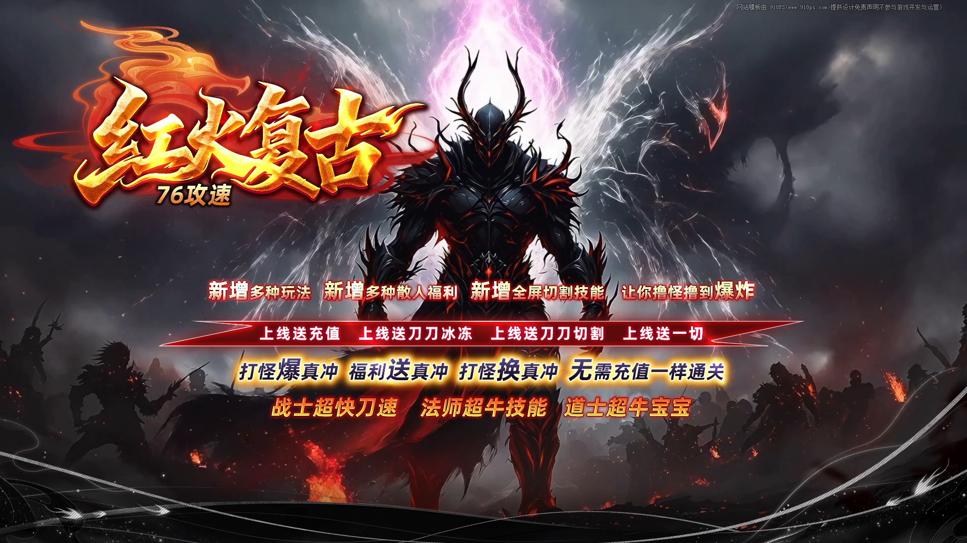 游戏介绍:全网独家1丶76红火攻速二季度·伏魔篇,装备属性合理,三职业平衡,长期耐玩!